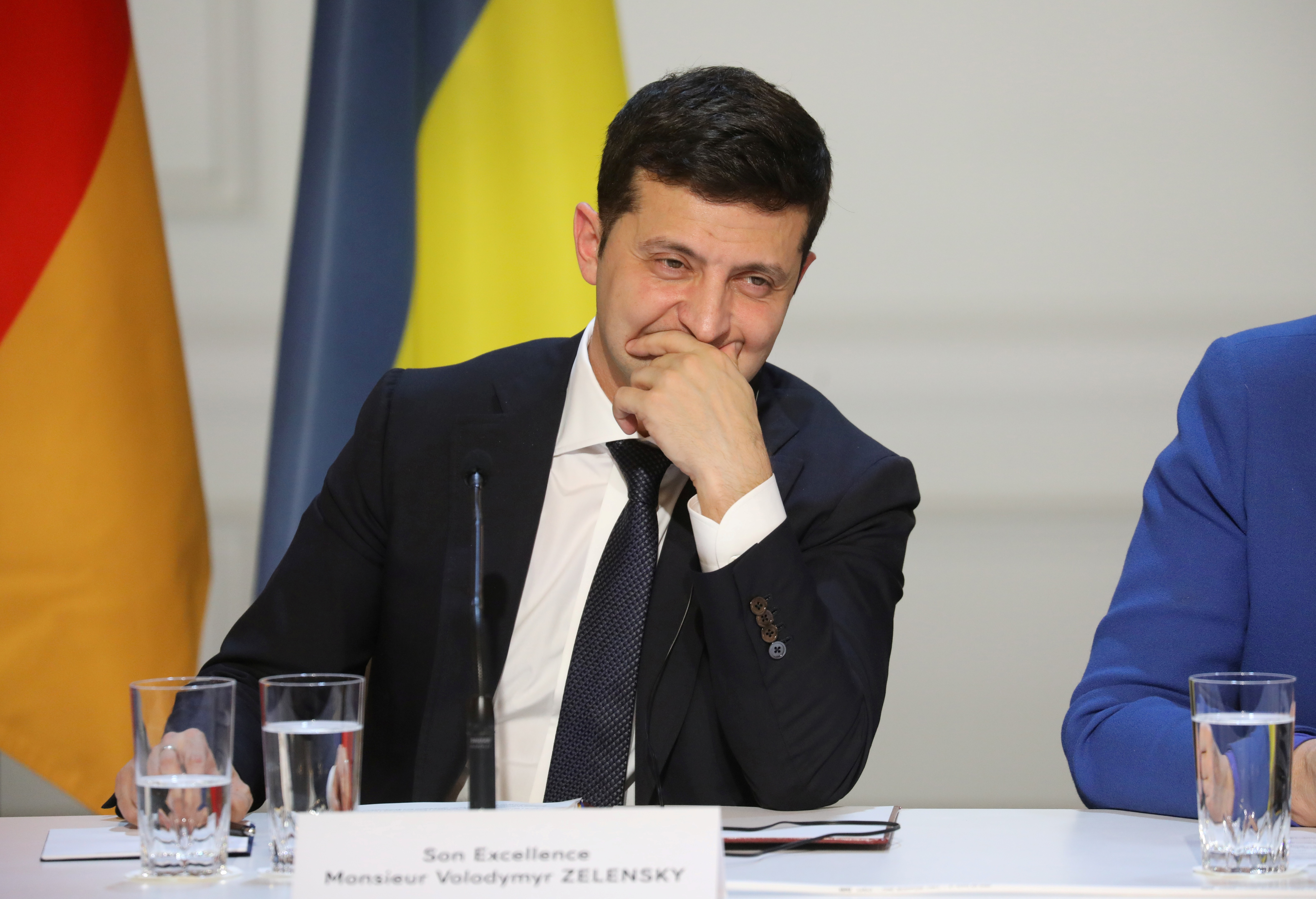 Украинский лидер Владимир Зеленский приехал в Елисейский дворец в Париже на встречу лидеров «нормандской четверки» в сером минивене Renault. На бампере автомобиля были установлены украинские флаги (фото).