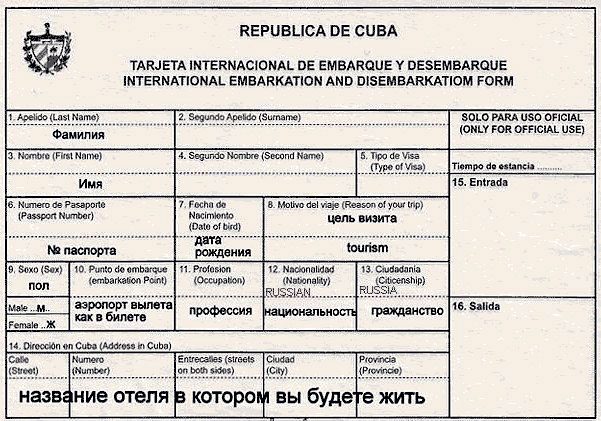 Образец заполнения миграционной карты в Кубу. Правила въезда и нахождения на территории страны в году.