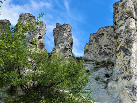 Как добраться: Ехать до села Сторожевое-1, насквозь, всё время прямо. Сначала до памятника «Сторожевской плацдарм». А потом до памятника с трезубцем, каской и надписью «Помним». Прямо возле него тропинка вниз к самой живописной из этих скал. Будьте осторожны в мокрую погоду. И на самой скале и на подъезде ожидаемо будет песец.