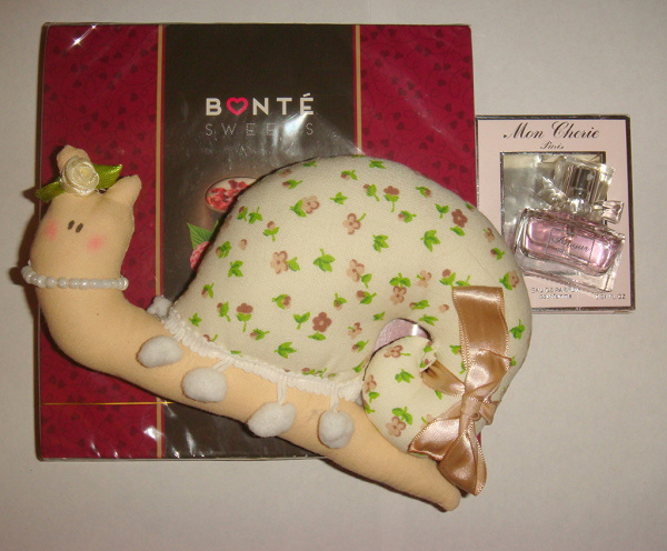 ![Отдается в дар «Подарок для девушки. Улитка Тильда, конфеты, парфюм.»]()