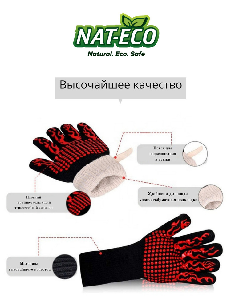 28 баллов с Premium Бестселлер Огнеупорные перчатки для барбекю, Набор инструментов для барбекю NAT-ECO Силиконовое покрытие, 2 предм. на 1 перс.
