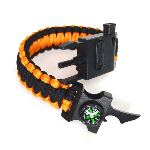 379 ₽ с Premium Браслет выживания из паракорда с ножом, огнивом, свистком, компасом и фонарем черно-оранжевый