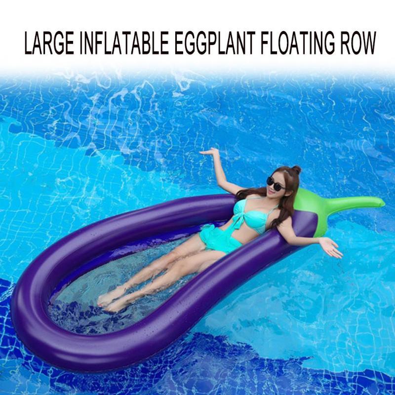 Весьма занятная по форме плавательная конструкция. Надувные бортики будут поддерживать ее на плаву, даже если налить в этот «баклажан» воды, а форма как раз позволит одному человеку среднего размера поместиться внутри. Хотите загорать — плавайте без балласта, хотите чтобы ваше тельце было частично в воде — налейте её внутрь.
