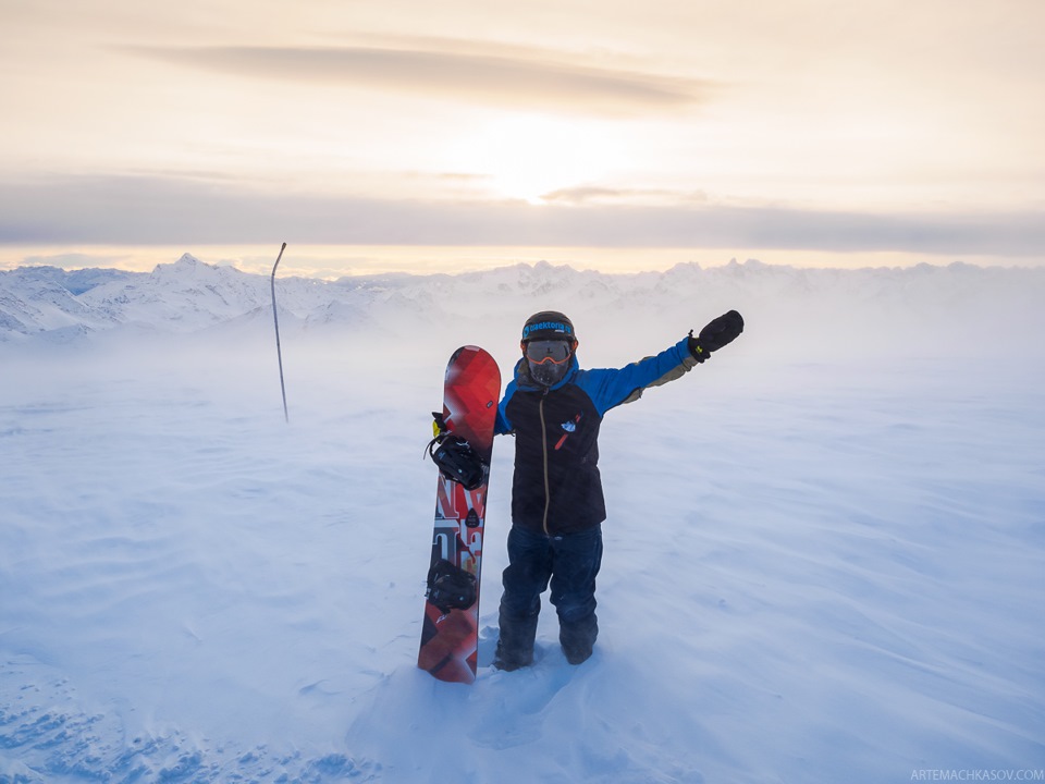 Достигнув необходимой точки, мы спешились. Вокруг “молоко”. Ветер сбивал с ног. Двое из нашей четверки взвесили все за и против и потребовали доставить их вниз на снегоходах. Мы же с коллегой по имени Миша, который оказался не меньшим придурком, чем я сам, решили остаться. Потребовав у нас денег за подъем и получив указание обратиться к своим пассажирам, снегоходчики растворились в метели.