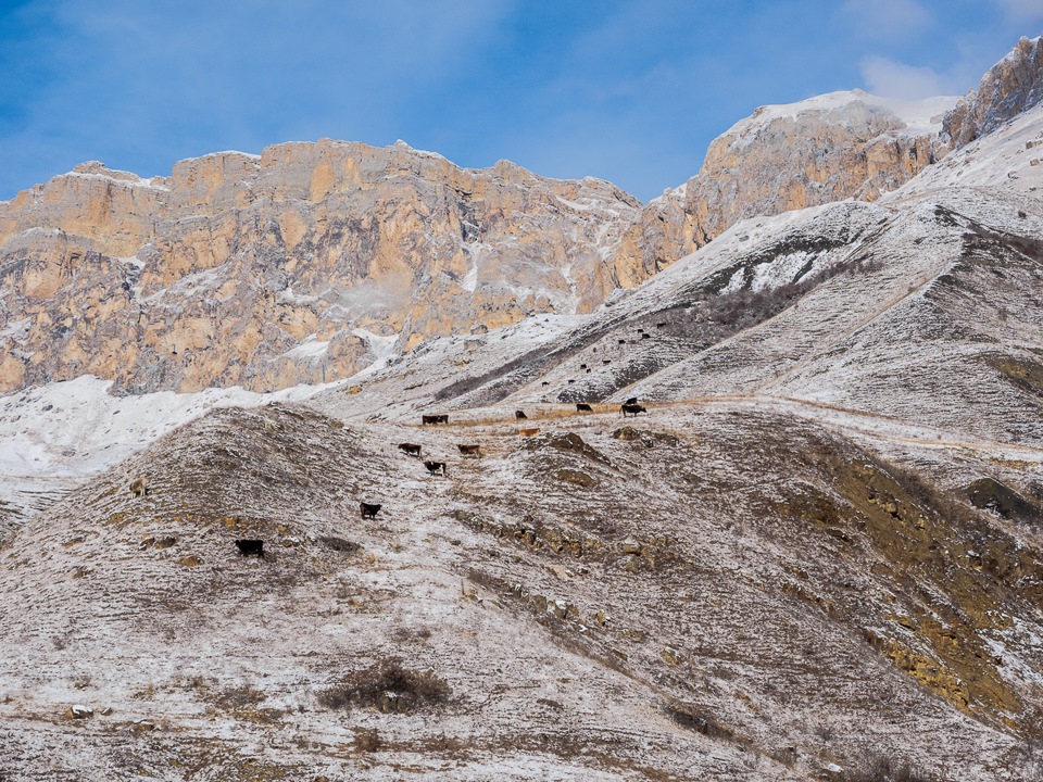 Чем дальше — тем выше, тем круче. Воздух — чище, звуков — меньше, отчего каждый из них пронзительнее и звонче. В буквальном смысле — если остановиться и заглушить мотор, то становится слышно звяканье колокольчиков на шеях у коров, пасушихся в паре километров от вас.