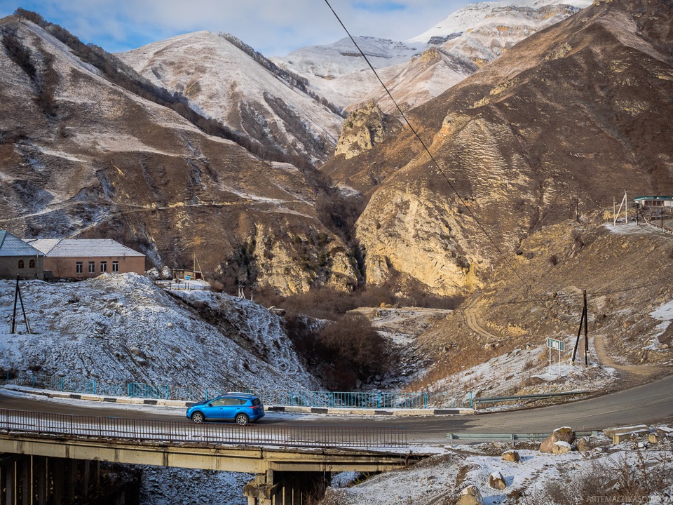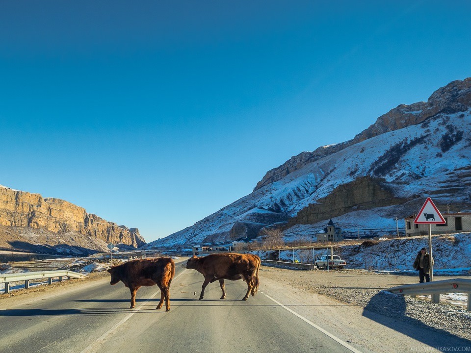 Как-то я уже ехал по этой дороге. Позади Минводы, впереди — Эльбрус. Только проехали границу Кабардино-Балкарии. Наш водитель Казбек гнал, что есть мочи. Рассказывая о том, как его по молодости собирали после страшного ДТП, виновником которого он стал, выехав на встречку в нетрезвом виде, Казбек в очередной раз пересек двойную сплошную на обгоне, втиснувшись между встречной машиной и попутной. В это раз он, судя по всему, был трезвым, но его манера езды пугала даже видавших виды москвичей.