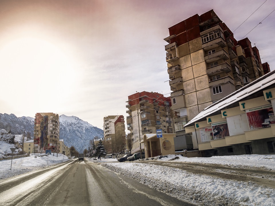 Позади — гнилые зубы девятиэтажек Тырныауза.