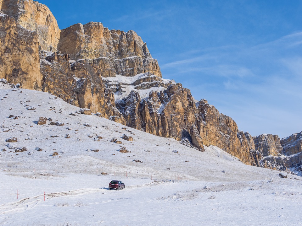 Еще несколько километров в гору. Заснеженные вершины вокруг все больше напоминают облака, на которые смотришь сквозь иллюминатор самолета.