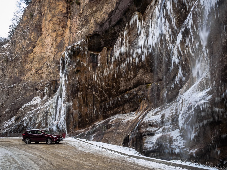Но вот ставить машину напротив водопада не стоит — камни падают вниз с завидной регулярностью, пробивая стекла и крышу. Жертвой камнепада стал автомобиль моих коллег… К счастью, в машине никого не было в этот момент.