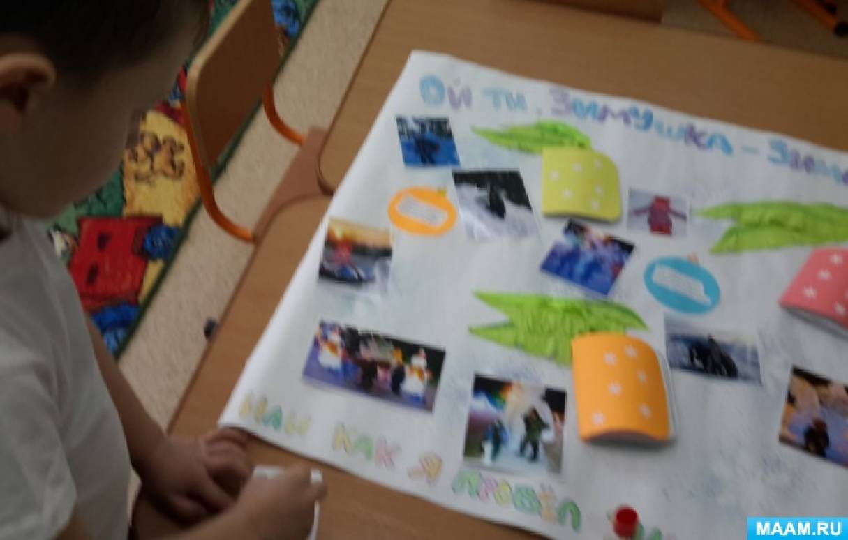 Очень нам с ребятами старшей группы пригодились фотографии зимних каникул. Все принесённые фото оформили в виде стенгазеты. Ребята с удовольствием приняли участие в оформлении : приклеивали свои фото и снежинки- звездочки .