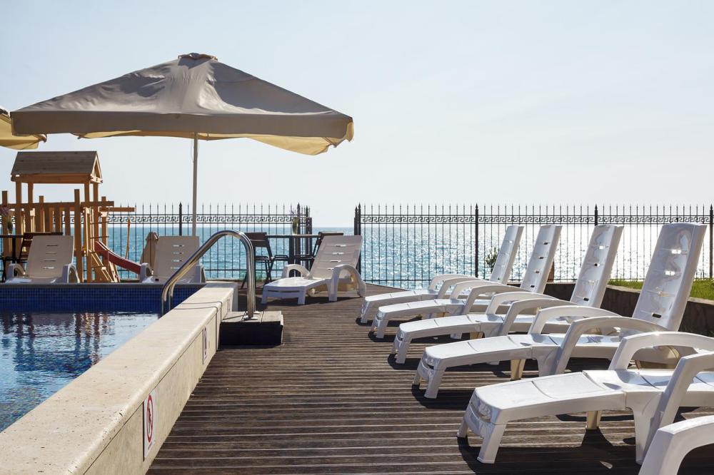 На муниципальном пляже и пляжной территории пансионатов установлены зонтики, кабинки для переодевания, душевые. Также работает масса водных и сухопутных аттракционов.