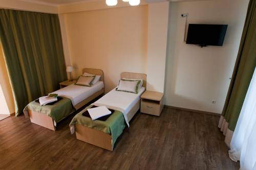 Отличный гостевой дом, всё чисто, красиво, ухожено. Приятные хозяева, помогут при необходимости. Персонал вежлив и общителен. Находится далеко от шумных кафе, в самом поселке есть всё, магазины, аптеки, пекарни, много кафе и столовых, два рынка. У нас остались только положительные эмоции от отдыха, могу смело рекомендовать другим. Нас было две семьи и 4 ребенка. Спасибо Николаю и Марии за гостеприимство!