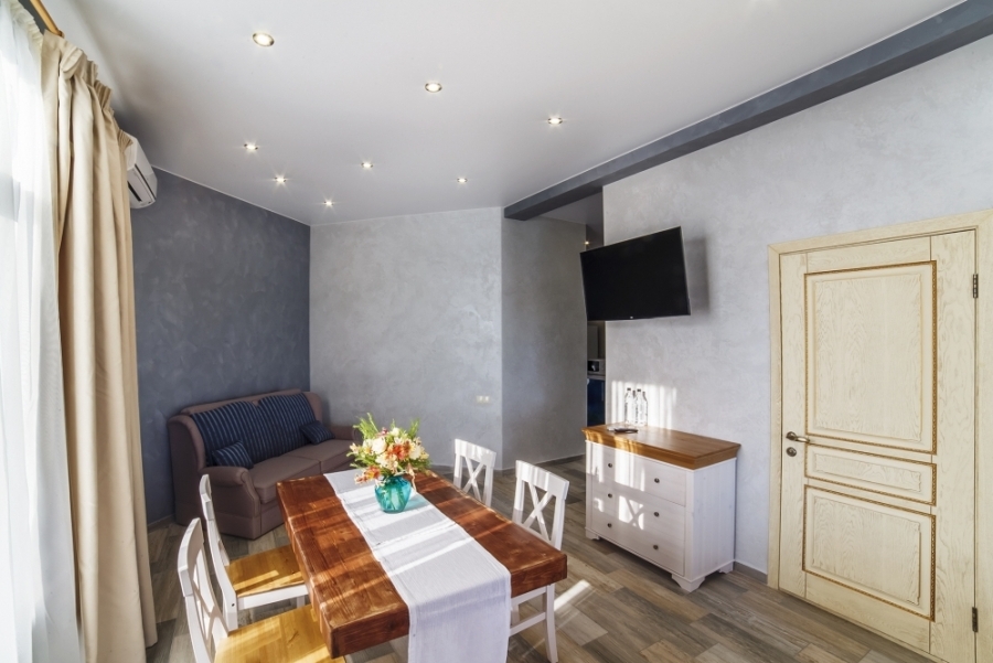 Первый раз отдыхали в этом месте и остались безумно довольны. Расположен в тихом месте, относительно «тусовочного» района в Николаевке. Идеально для семей с детьми и тех, кто делает насладиться уединением, тишиной и полным релаксом в отпуске. Персонал очень вежливый и всегда готов помочь. Уборка в номере так же на высшем уровне, все очень чисто и с душой! Обязательно вернёмся ещё.