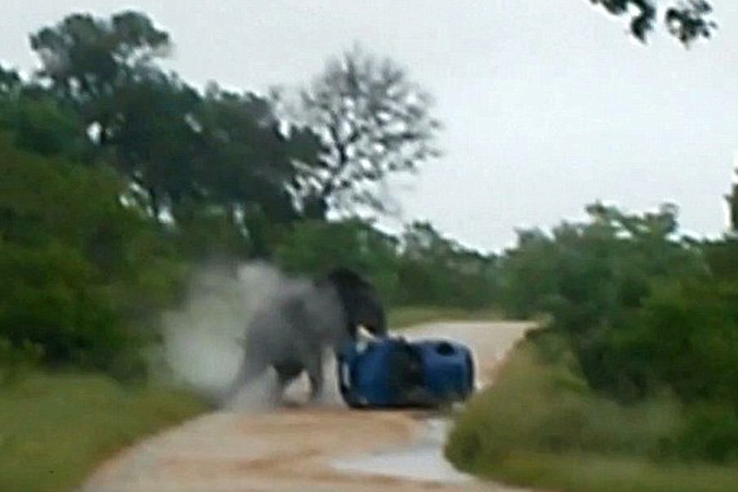 Два года назад в Национальном парке Пиланесберг, который расположен в Северо-Западной области ЮАР, был подобный случай: слон без особых усилий перевернул машину и скатил ее на обочину. К счастью, путешественники отделались лишь незначительными ушибами и синяками.
