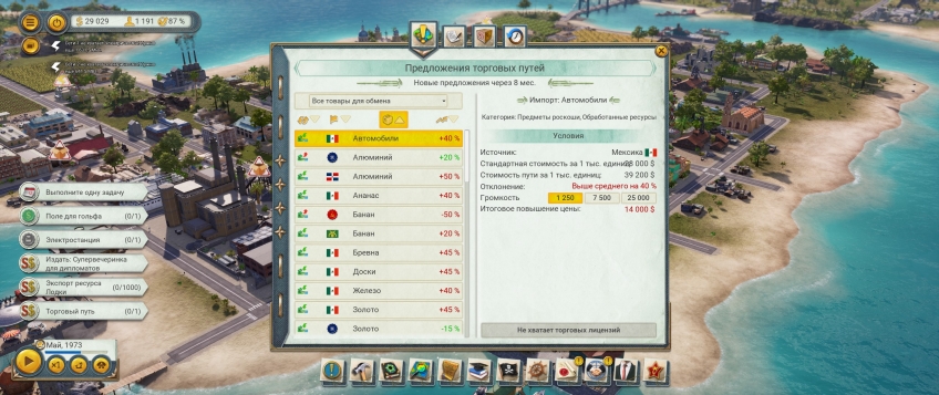 Иногда деньжат подкидывают зарубежные партнёры, если вы умудрились сохранить с ними хорошие отношения. Они же предоставляют и выгодные торговые пути: отдельные товары можно вручную направлять в конкретную страну, которая предложит за них лучшую цену. Но и тут есть подвох! Создавая такой путь, вы заранее прописываете, сколько единиц товара должно по нему уйти, — чем больше, тем выгоднее. Вот только если укажете слишком много, то отсылаться они будут годами; количество одновременно существующих торговых путей ограничено.