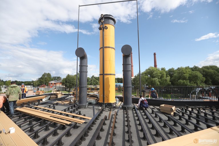 Тематическая площадка «От парохода до атомохода» посвящена истории техники и технологии Военно-Морского Флота России. Рассказывает об эволюции кораблей ВМФ во взаимосвязи с развитием паросиловых установок. Рисунки и тексты о развитии паровых двигателей на флоте вытравлены на стилизованных металлических пароходных трубах.