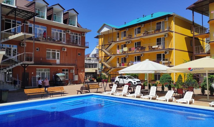Современный гостиничный комплекс для отдыха расположен на второй береговой линии Туапсинского района, п.г.т. Новомихайловский, ул. Морская № 32,36 рядом с центральным пляжем, имеет собственную территорию, 3 -4х/этажных здания и 1 -3х этажное здание.