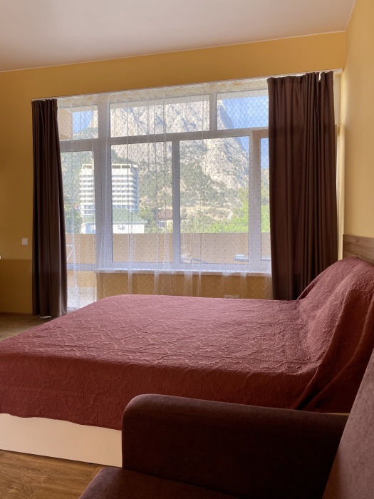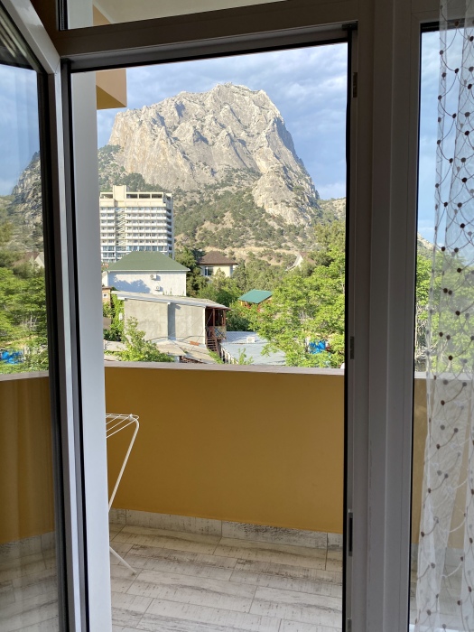 Уютная квартира-студия с панорамным видом на море и горы, находится на третьем этаже пятиэтажного дома.