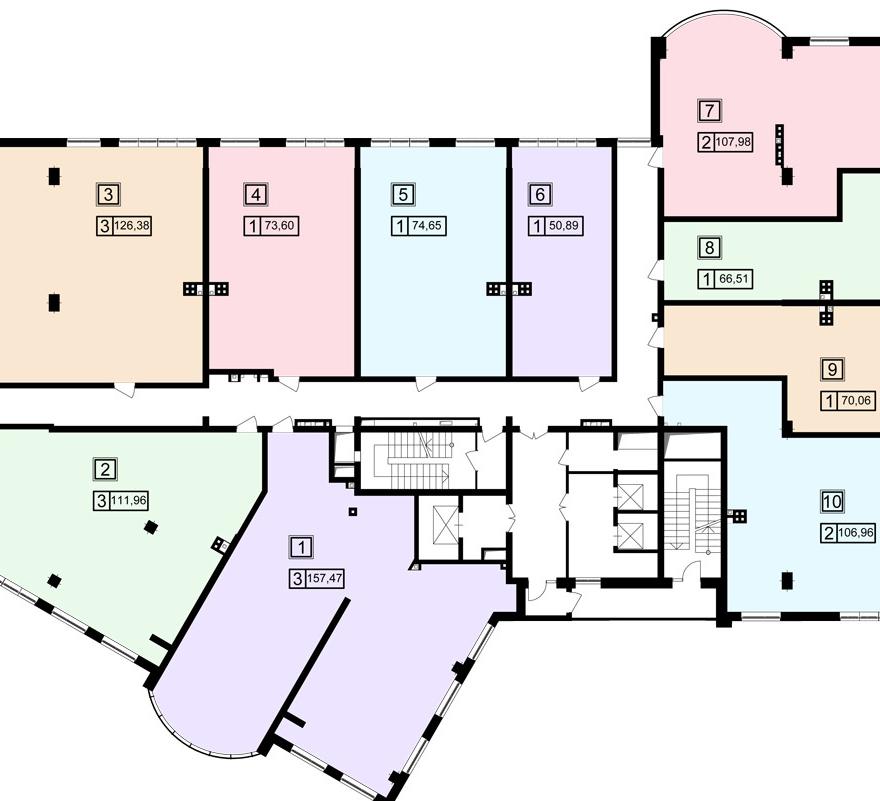 Предлагаются просторные квартиры площадью от 74 до 154 кв.м. Есть возможность самим выбрать размещение внутренних стен, а их установка выполняется бесплатно.