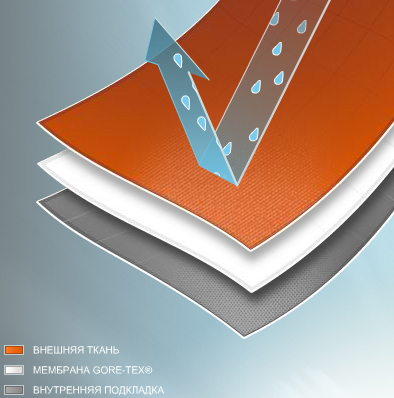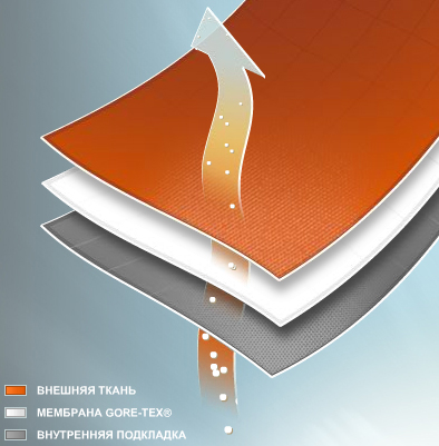 Одежда с мембраной Gore-Tex Gore-Tex В основе тканей Gore-Tex лежит крайне тонкая мембрана, водостойкая, ветрозащищенная и паропроницаемая.Подробнее даже побывала за пределами Земли – на Луне. Во время полета в 1981 году астронавты NASA были одеты в скафандры, изготовленные с использованием данной технологии.