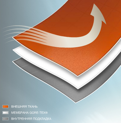 Мембрана гортекс обладает превосходными эксплуатационными характеристиками, среди которых водо- и ветронепроницаемость, а также паропроницаемость.