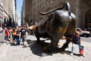 6. У скульптуры «Атакующий бык» в Нью-Йорке. (Фото: CHIP EAST/Newscom/Reuters).
