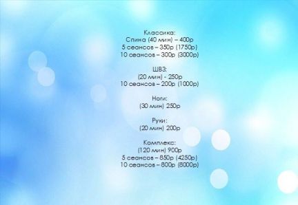 Мы ценим Ваше время и деньги. Программа массажа длится ровно столько, сколько заявлено в прайсе