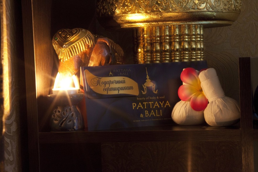 В салоне «Паттайя&Бали» — это восточный интерьер, спокойная музыка, мягкий свет и тайское радушие. Здесь обещают поделиться секретом о том, как сохранить в себе гармонию, мудрость и жизненную энергию. Spa-программы здесь представлены в 6 направлениях: уход за телом (7 вариантов), уход за лицом, spa для двоих (романтическое искушение), spa-день (девичник), spa-пилинг (13 видов: шоколад и чили, кокос, папайя, манго, личи и др.), spa-обертывание (9 видов: клюквенное, со спирулиной, листьями ламинарии и т. д.).
