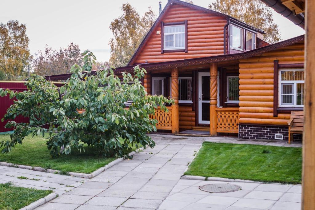 Отдых в уютном бревенчатом домике рядом с живыми елями в компании с близкими.