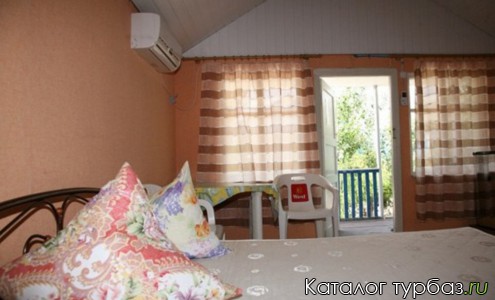 Домик без удобств. Вместимость 4 человека. Возле домика индивидуальная беседка со столиком, лавками. Внутри комната с 1-местными кроватями, постельное белье, столик, стулья, тумбочки. Туалет и душ на территории.