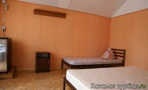 В 2-местной комнате стандарт 2-местная кровать, 1-местная кровать, вешалка, холодильник, вентилятор. Туалет и душ на территории базы.