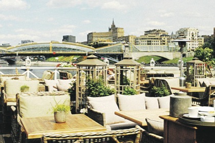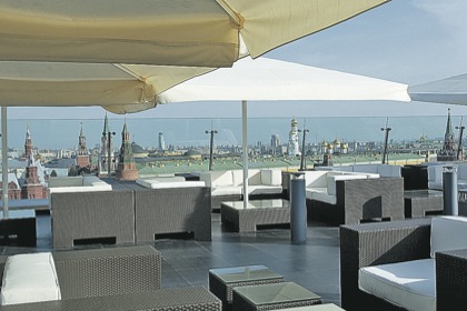 С террасы открывается весьма живописный вид на центр Москвы. В ресторане предлагают блюда пан-азиатской и европейской кухни.