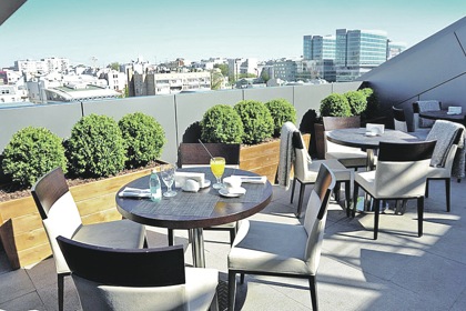 Как несложно догадаться, находится ресторанчик на крыше, точнее, там расположилась его летняя веранда. Интерьер весьма лаконичный, зато посетители смогут целиком и полностью сконцентрироваться на вкусовых ощущениях.
