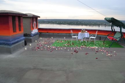 Ещё один вариант это свидание на крыше девятиэтажного дома в центре города. Предлагается три пакета: Dream, Romantic, Premium. Dream один час. Пакет включает сервированный стол, качели и тёплые пледы, зонты на случай дождя, шампанское Bosco и коробку конфет. Romantic полтора часа. Romantic включает всё то же, что и Dream, плюс сок или горячий чай, тарелку фруктов, романтическую музыку и свечи. Premium два часа. Дополнительно к Romantic, в Premium входит выступление саксофониста, оформление и фотосессия.