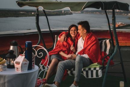 Водная гладь располагает к романтической обстановке. Прекрасные виды на Каму, танцы, игры, конкурсы – все это входит в полуторачасовую программу прогулки на речных трамвайчиках. Но если хочется уединения, можно сесть за уютный столик и вдвоем наблюдать за камской волной под приятную музыку и бокал хорошего вина.