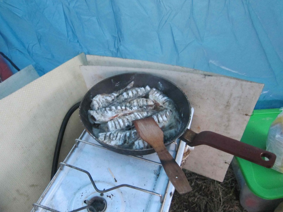 Первая рыбка – ура – маленькая плотвичка:) И первая жаренка…