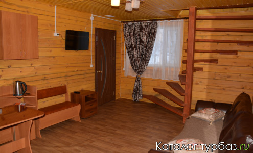 Благоустроенный семейный номер, для 10-и персон. Включает в себя веранду, три комнаты(зал, две спальни), санузел (раковина,унитаз), два балкона, лестницу на второй этаж.