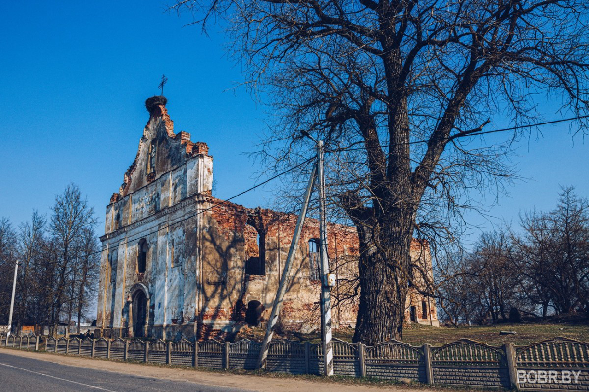 В 40 км от Бобруйска, мы подъезжаем к точке № 1: деревня Свислочь Осиповичский район, Могилевская область. Здесь находится замчище и служебная старинная постройка.