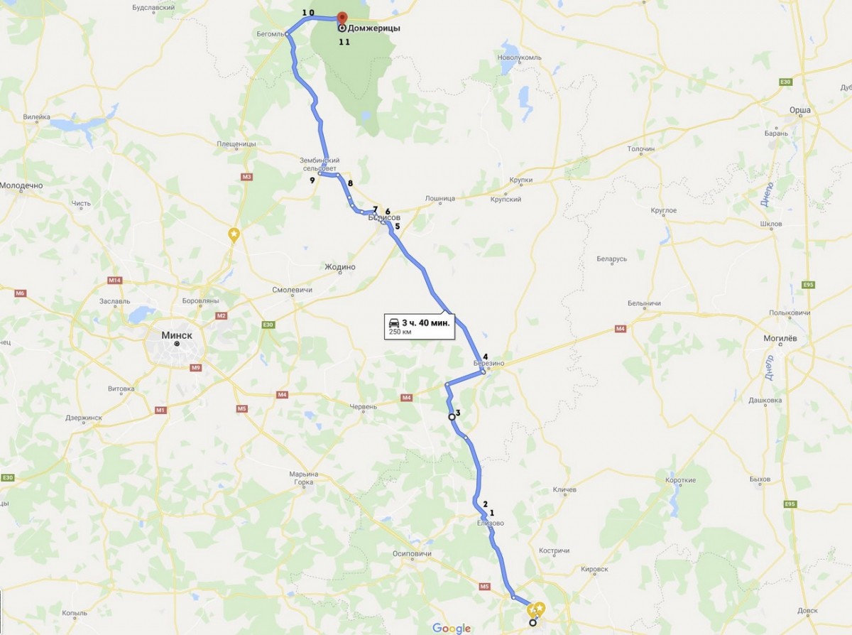 Маршрут Валентина: Бобруйск – Елизово – Богушевичи - Березино – Борисов – (Брилевское поле) –Зембин - Бабцы - Домжерицы.