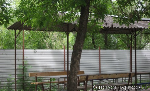 Размещение:Домики с собственным двором на 6, 7 или 8 человек. В домике предусмотрены душевая комната и деревянная мебель. У каждого домика есть беседка с мангалом, дровами и шампурами. Так же отдыхающие могут арендовать беседку на один день без заселения в домик. Есть охраняемая автостоянка.