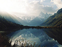 в бассейне реки Теберды насчитывается более 100 озер. Туманлыкель – одно из крупных, которое подпитывают ледники.Добраться до него можно по асфальтовой дороге, свернуть на которую надо, не доезжая 6 км до Домбайской поляны. Доезжаем автобусом из Минвод до Домбая (500 рублей).