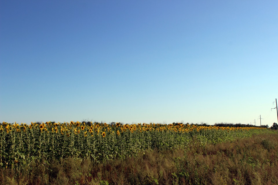 Вокруг сплошная степь, смотреть особо не на что. Только у самого Шульбинска уже попалось поле подсолнухов, чем мы и не преминули воспользоваться:-) В смысле пофотографироваться, а не наворовать подсолнухов:-)