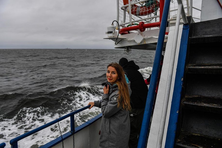 Бортжурналистка на берегу Белого моря Большого Соловецкого острова.
