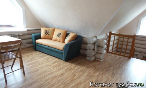 На втором этаже - одна двуспальная кровать (за ширмой).