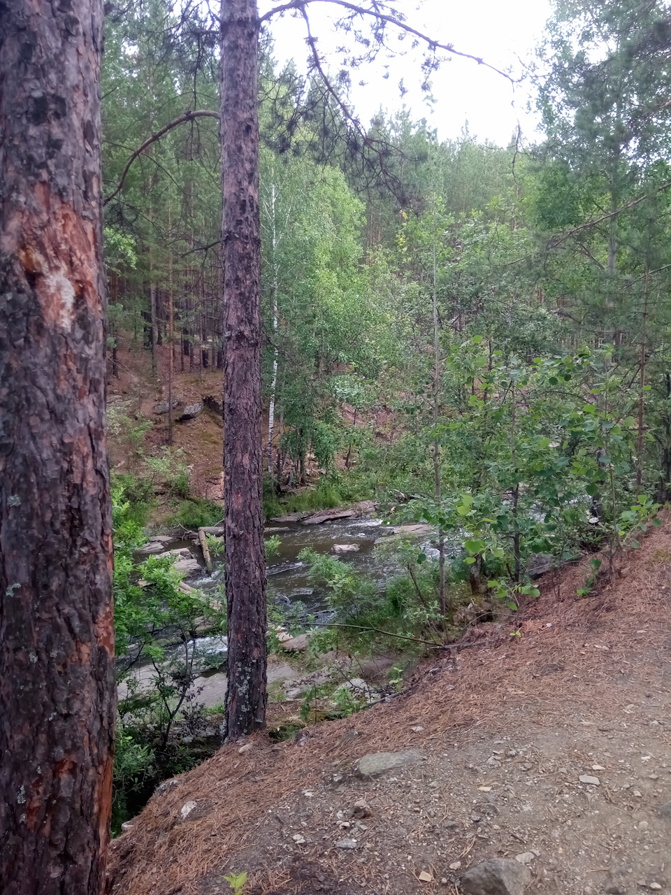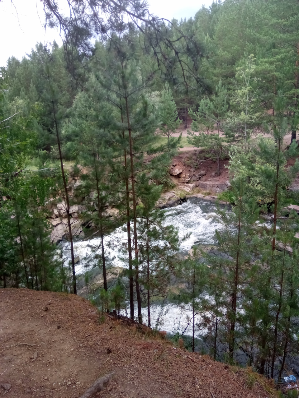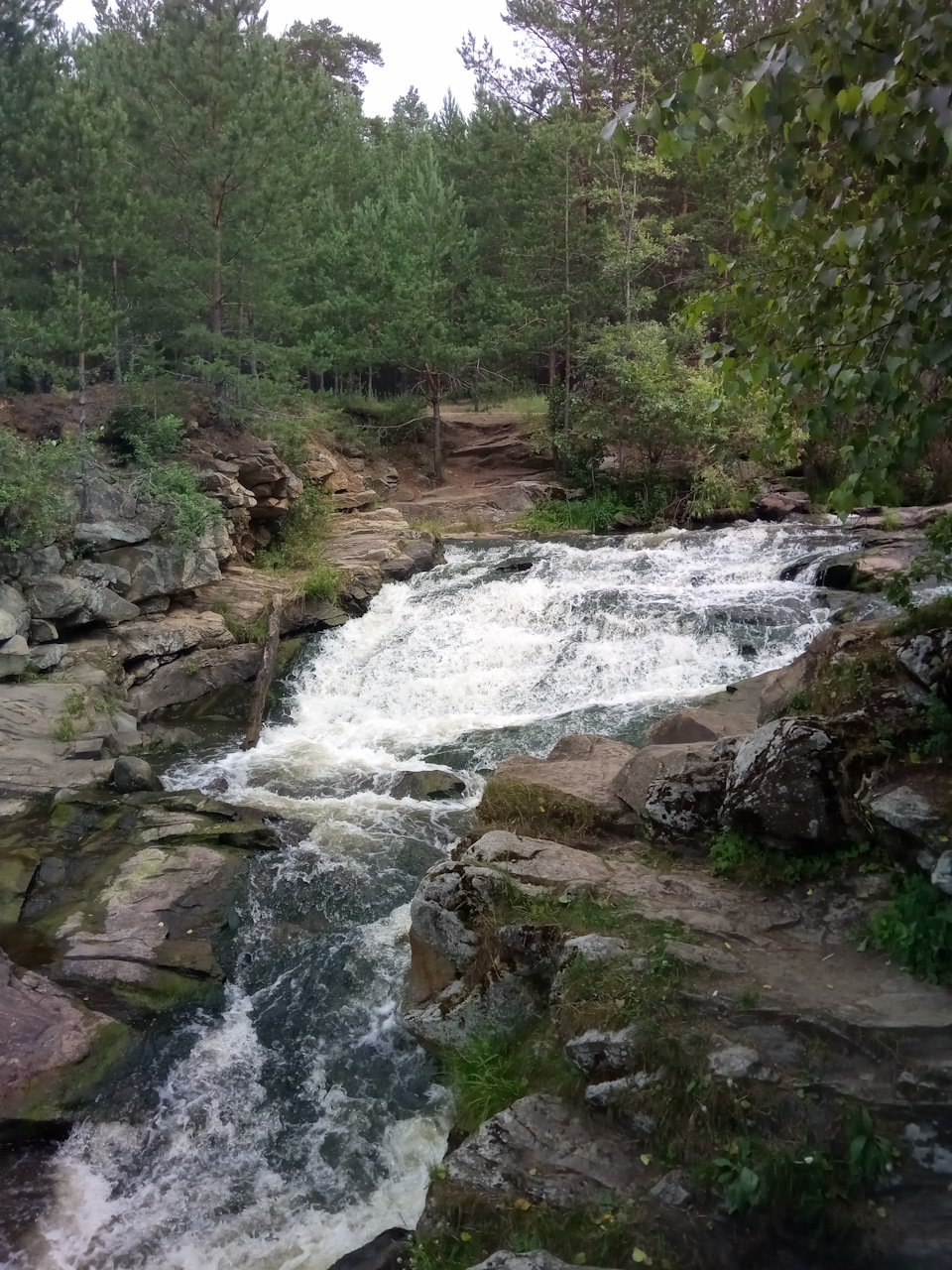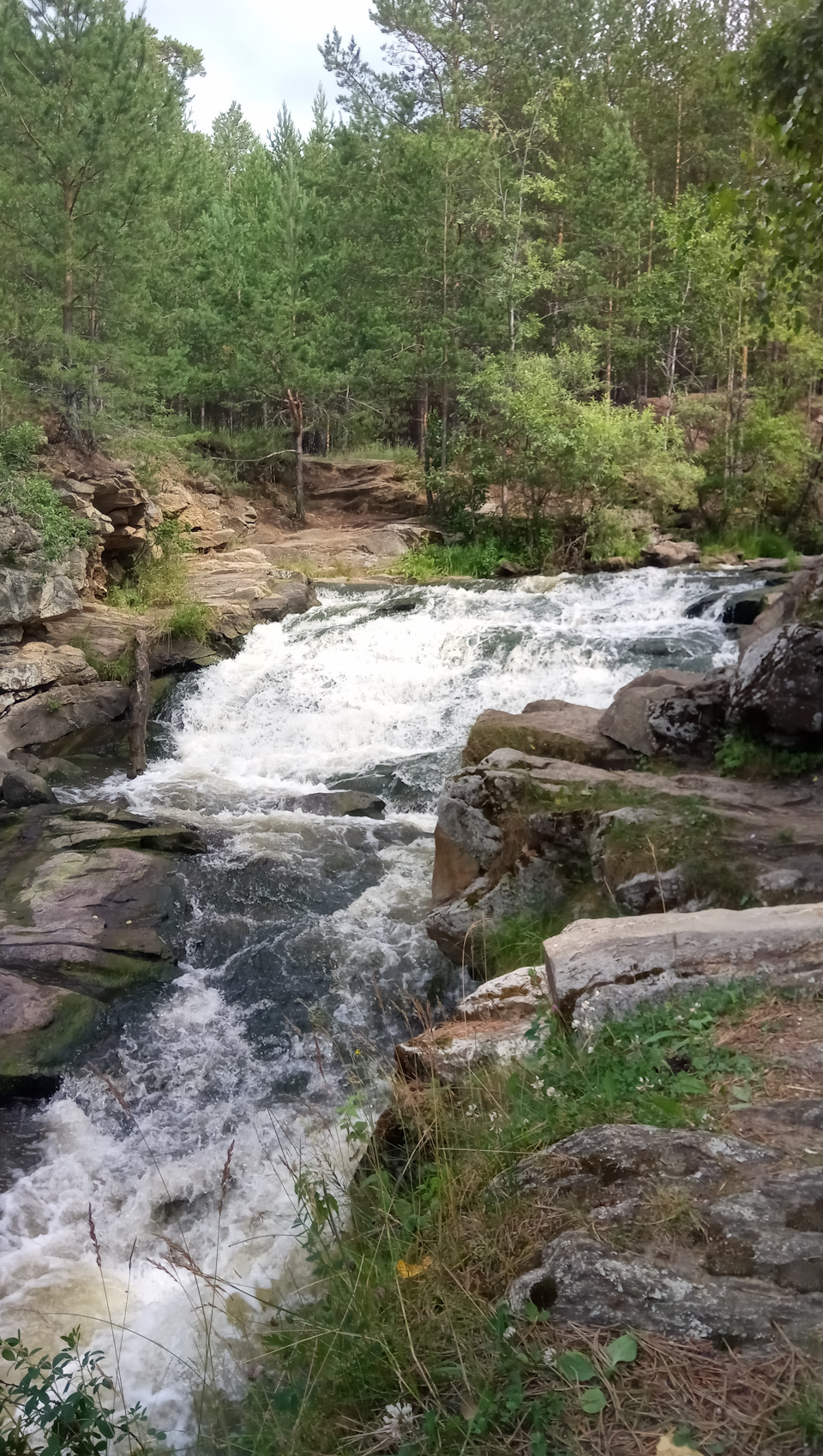 Вырвавшись из недр водохранилища, вода сначала вполне спокойно течет по "лесному коридору", после чего на ее пути появляются небольшие пороги и огромные валуны.