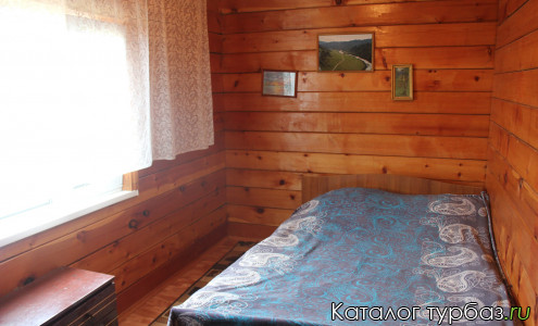 Номер 2-местный в 2-этажном доме. В комнате две односпальных кровати, постельное белье, отопление. Внутренняя отделка и мебель из натурального дерева. Туалет и душ на улице.