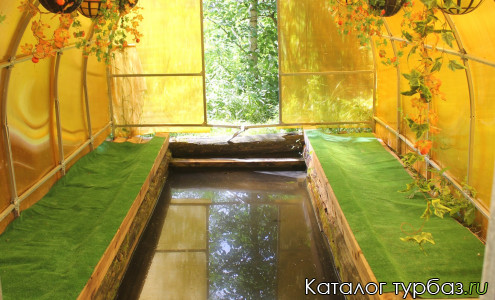 После бани гости любят охладиться в водоеме с проточной родниковой водой, который расположен на территории усадьбы "Отдых по карману".