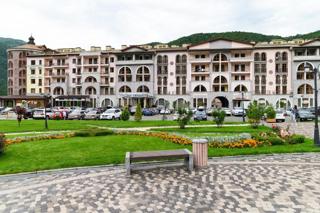 В самом центре поселка Эсто-Садок расположена Центральная площадь и главное место всего туристического комплекса Роза Хутор - Площадь Роза.