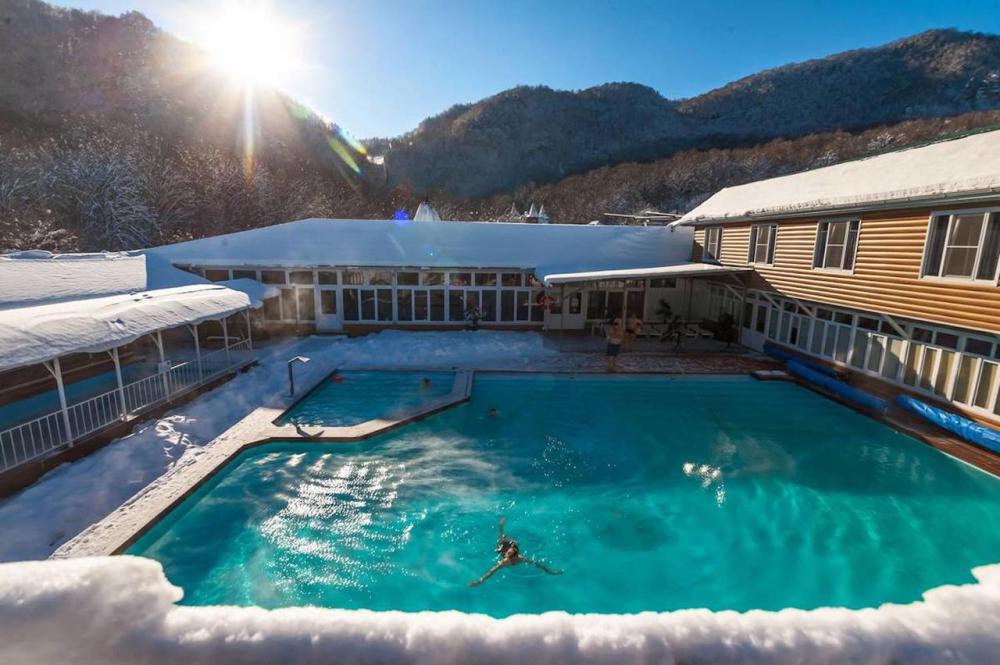 В пансионате "Большая Медведица" есть большой бассейн с температурой воды в 32 градуса круглый год. Очень эффектно плавать в бассейне и наблюдать вот такие виды: