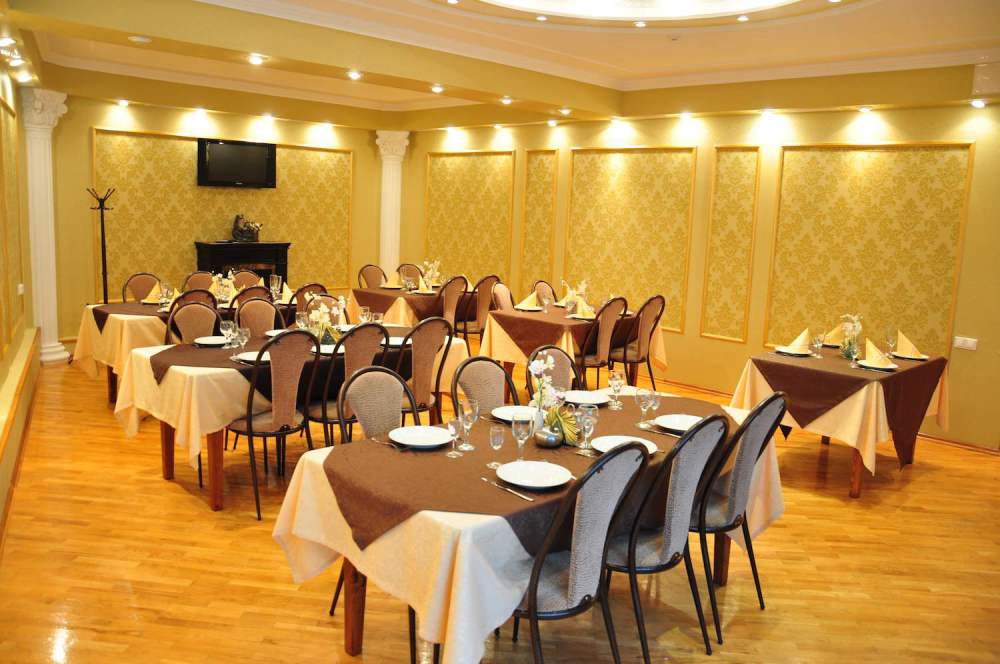 В большом зале установлена линия раздачи по типу «столовая». На мангале профессиональный шашлычник быстро приготовит любые блюда-гриль: из мяса, рыбы или овощей.
